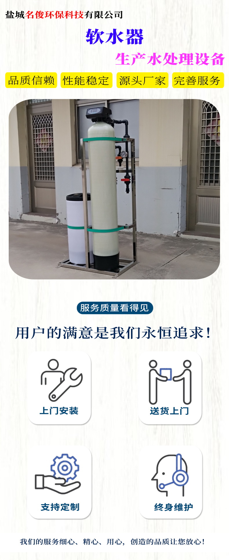 鹽城名俊環(huán)保科技有限公司主要生產(chǎn)水處理設(shè)備、純水設(shè)備、去離子水設(shè)備、軟水器、工業(yè)去離子水、反滲透(RO)裝置、超純水去離子(EDI)等系統(tǒng)設(shè)備。應(yīng)用于電子工業(yè)超純水制備、衛(wèi)生行業(yè)用水制備、火力發(fā)電廠及工廠鍋爐軟化除鹽水制備等工業(yè)用水制備等。并銷(xiāo)售水處理系統(tǒng)儀表、水泵、管閥件、濾芯、濾料、及離子交換樹(shù)脂等耗材。